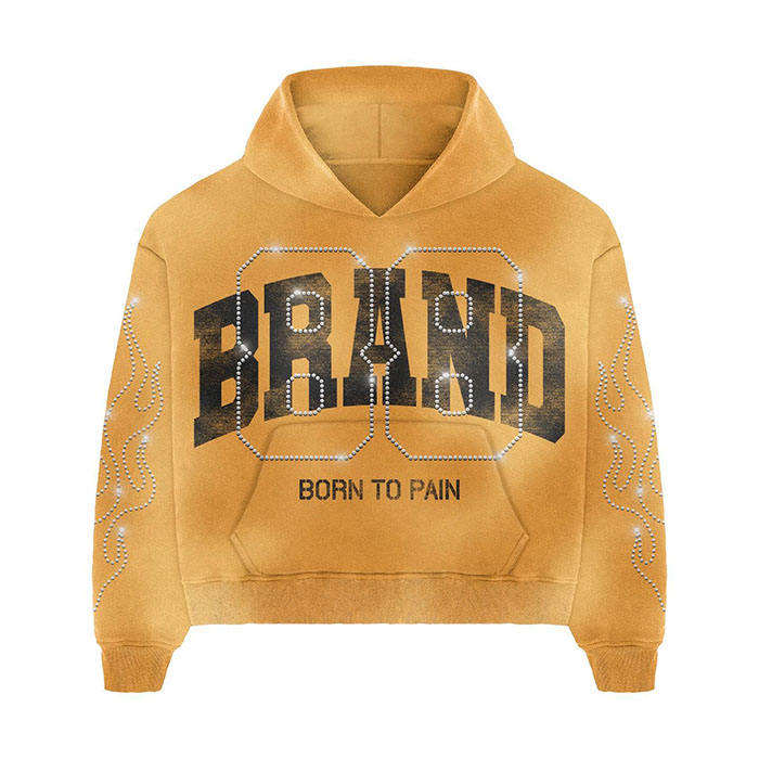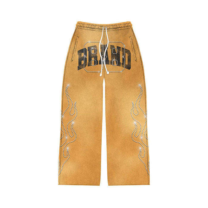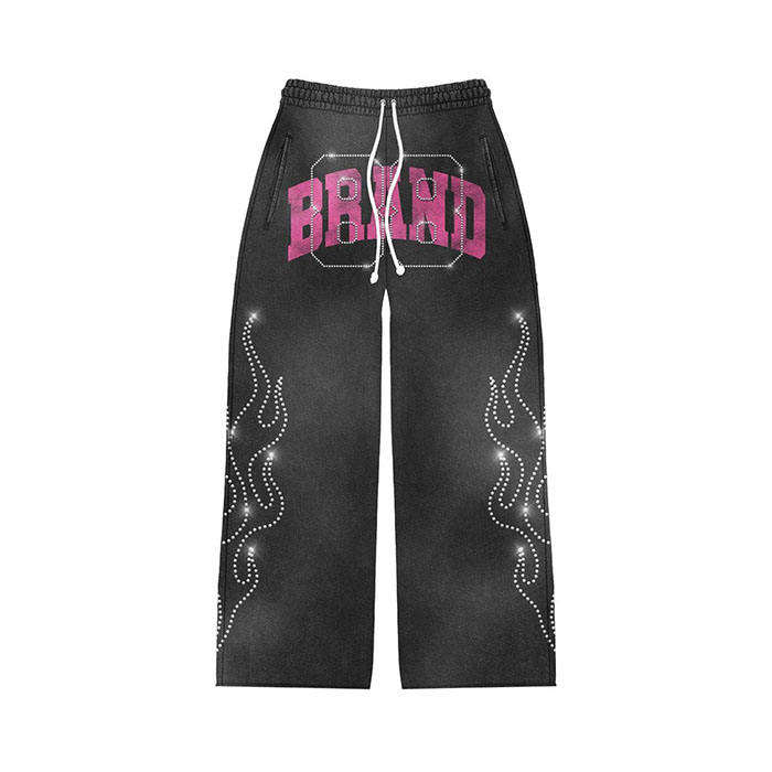 Ensemble de survêtement évasé unisexe personnalisé de haute qualité, délavé à l'acide, avec motif sérigraphié et strass, pour l'hiver