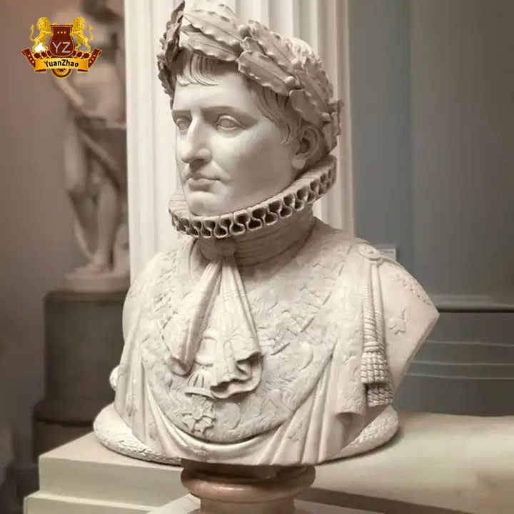 Figure en pierre naturelle personnalisée de haute qualité, taille réelle, buste en marbre blanc, sculpture de Napoléon