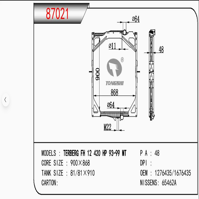 Nom du produit:Camion Radiaor For TERBERG FH 12 420 HP 93-99