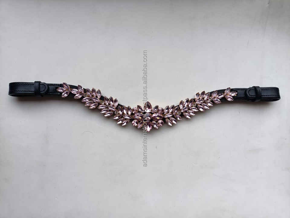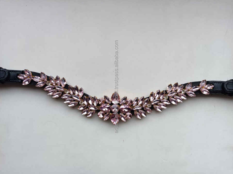 Cristaux personnalisés de haute qualité Strass Mega Bling Horse Bande de front en cuir fait à la main toutes les tailles | vente en gros de bandeaux de cheval bling