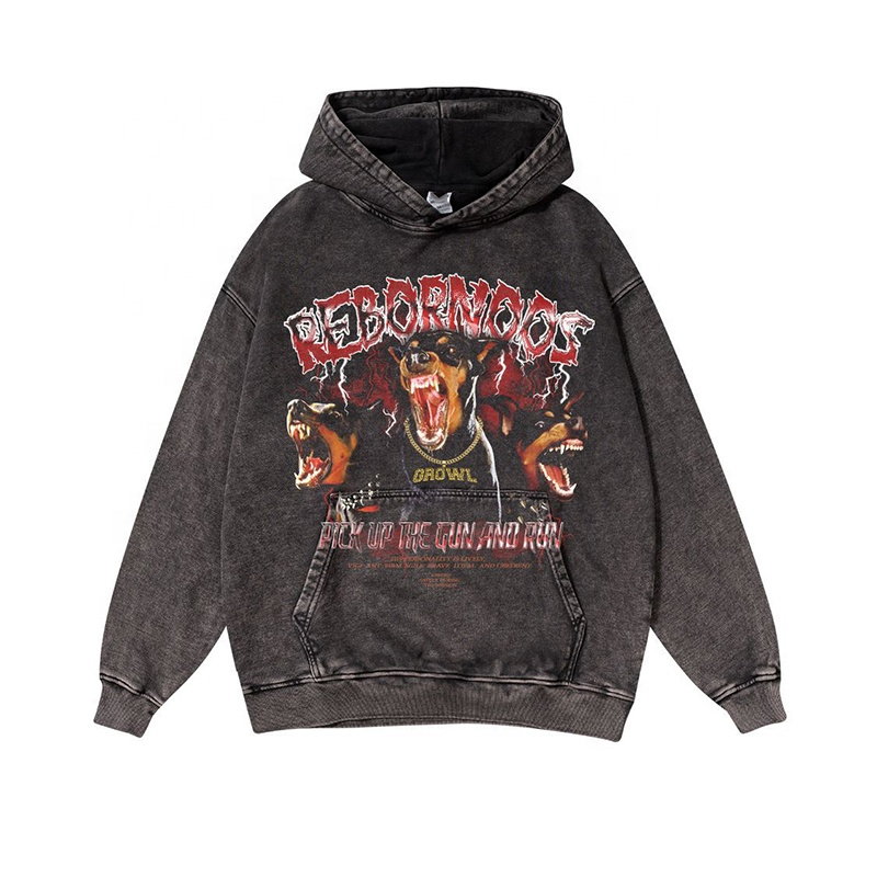 Sweat à capuche surdimensionné personnalisé de haute qualité, style streetwear hip-hop, imprimé, effet délavé, tissé, motif anime, pour hommes