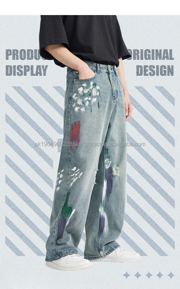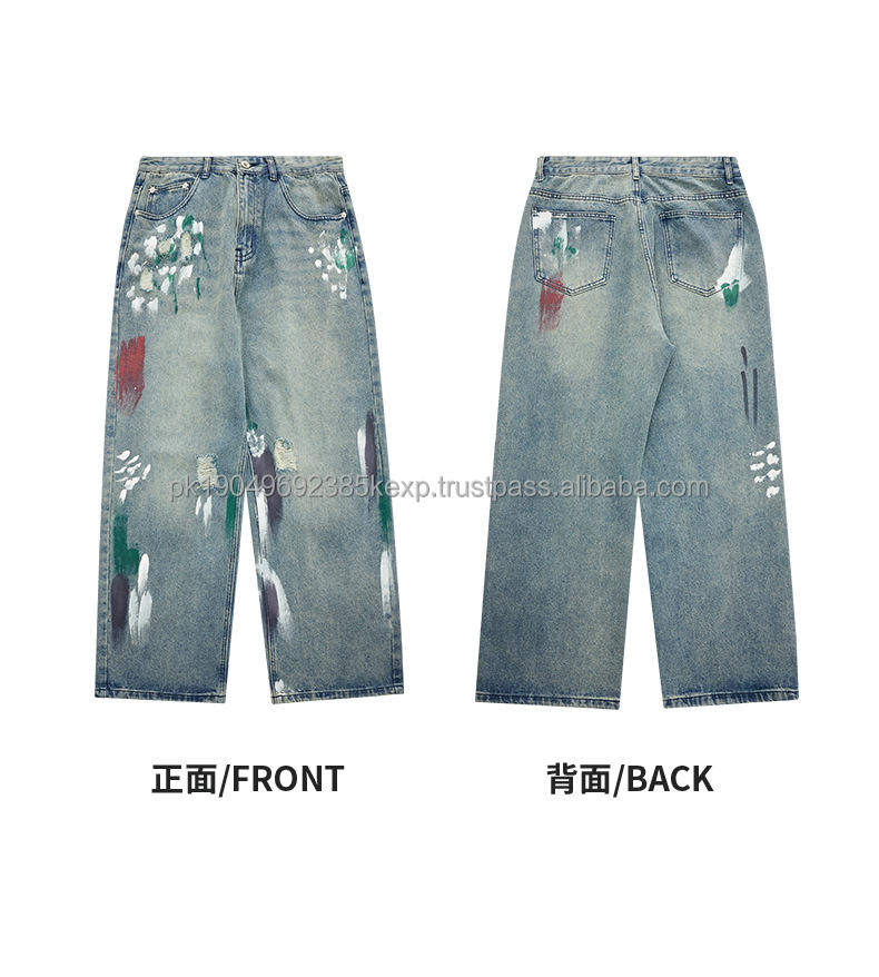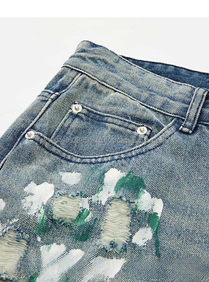 Sweat-shirts pour hommes à jambes larges déchirés et usés de haute qualité personnalisés, style streetwear, amples, 100% coton, vêtements en denim d'hiver