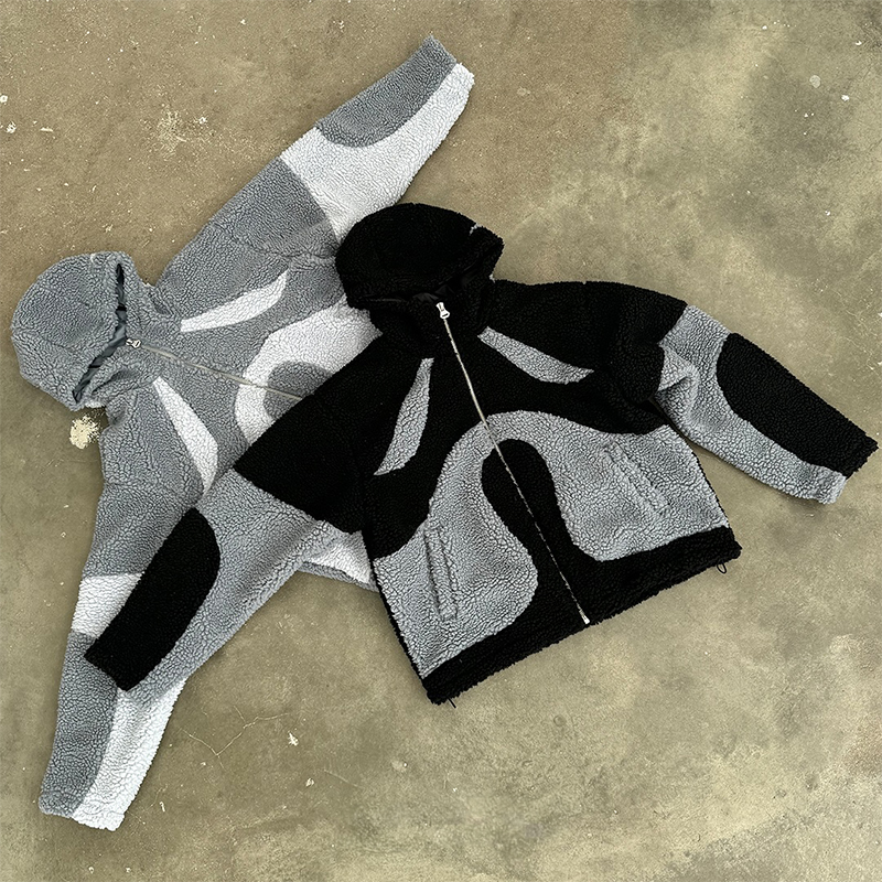 Veste en sherpa personnalisée de haute qualité avec logo brodé, veste polaire en sherpa à blocs de couleur, fermeture éclair, veste en polaire pour homme personnalisée