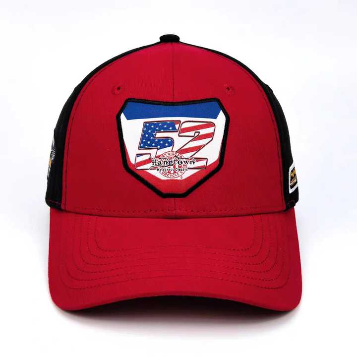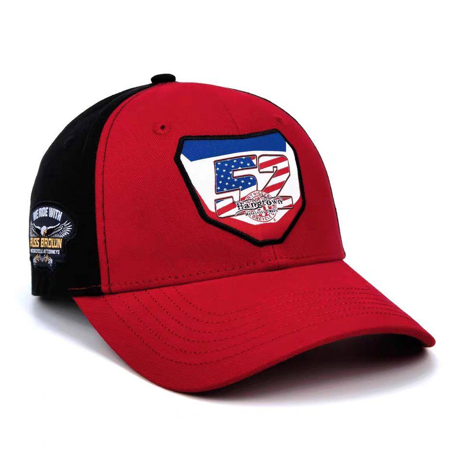 Casquette de sport de course à broderie personnalisée de haute qualité, vintage rouge et noir, 6 panneaux, casquette de baseball ajustée rétro, motif taureau