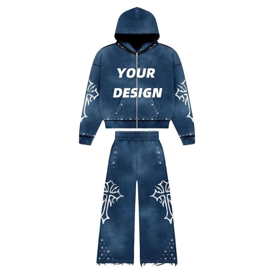 Ensemble de survêtement vintage à lavage acide de haute qualité personnalisé, pantalon de survêtement imprimé d'hiver, sweat-shirt, survêtement écologique