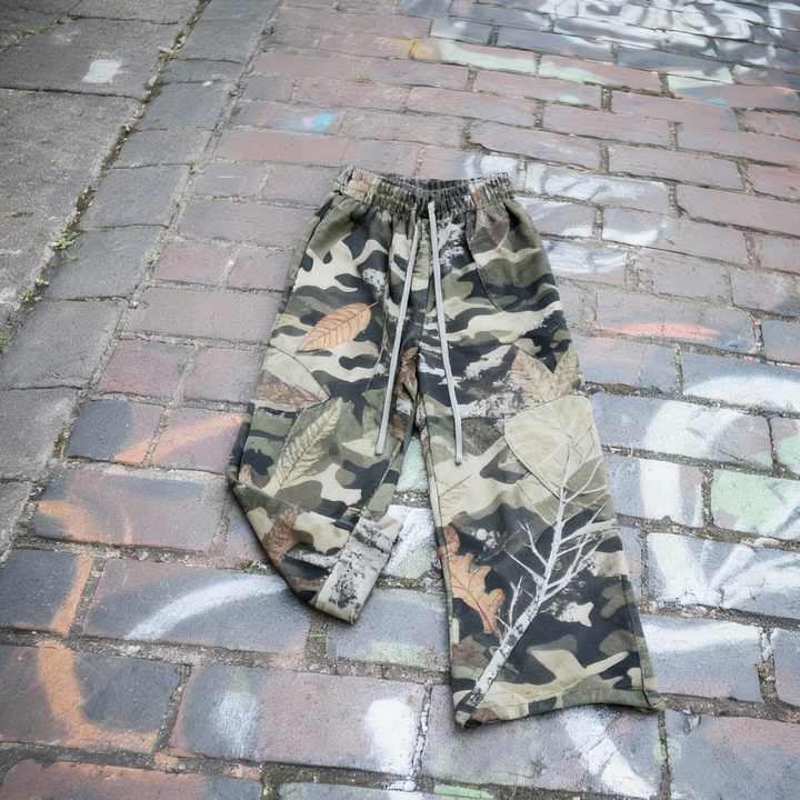 Pantalon de survêtement camouflage baggy à jambe large et droite, imprimé intégral, multi-poches, de haute qualité et épais
