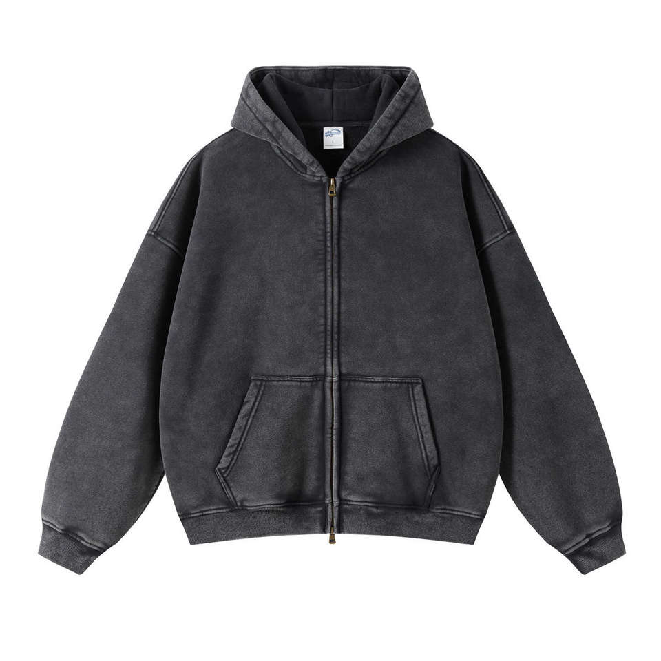 Sweat à capuche zippé surdimensionné personnalisé de haute qualité, épais, uni, pour l'automne, style vintage délavé à l'acide, avec logos personnalisés