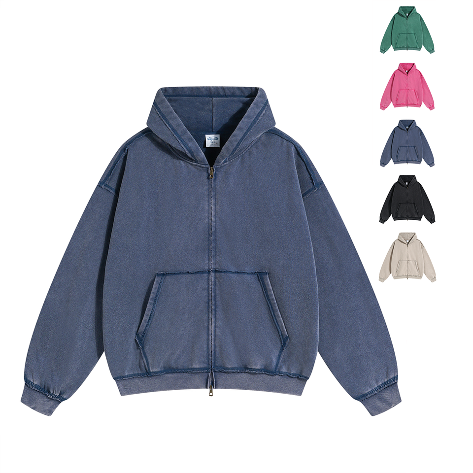 Sweats à capuche personnalisés de haute qualité pour hommes sweat à capuche zippé vintage délavé à la mode