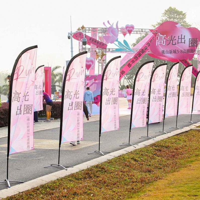 Drapeau publicitaire en polyester tricoté de haute qualité sur mesure, livraison rapide pour les événements en plein air et les magasins avec logo personnalisé