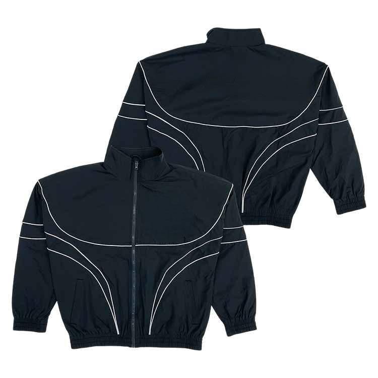 Survêtement d'automne léger et personnalisé de haute qualité, avec logo thermocollé, réfléchissant, style streetwear sportif, noir, ensemble 2-en-1 (veste et pantalon de jogging)