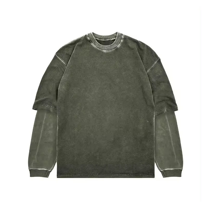 T-shirt personnalisé de haute qualité à manches doubles délavé à l'acide long T-Shirt homme surdimensionné à manches doubles délavé à l'acide longue couche en coton