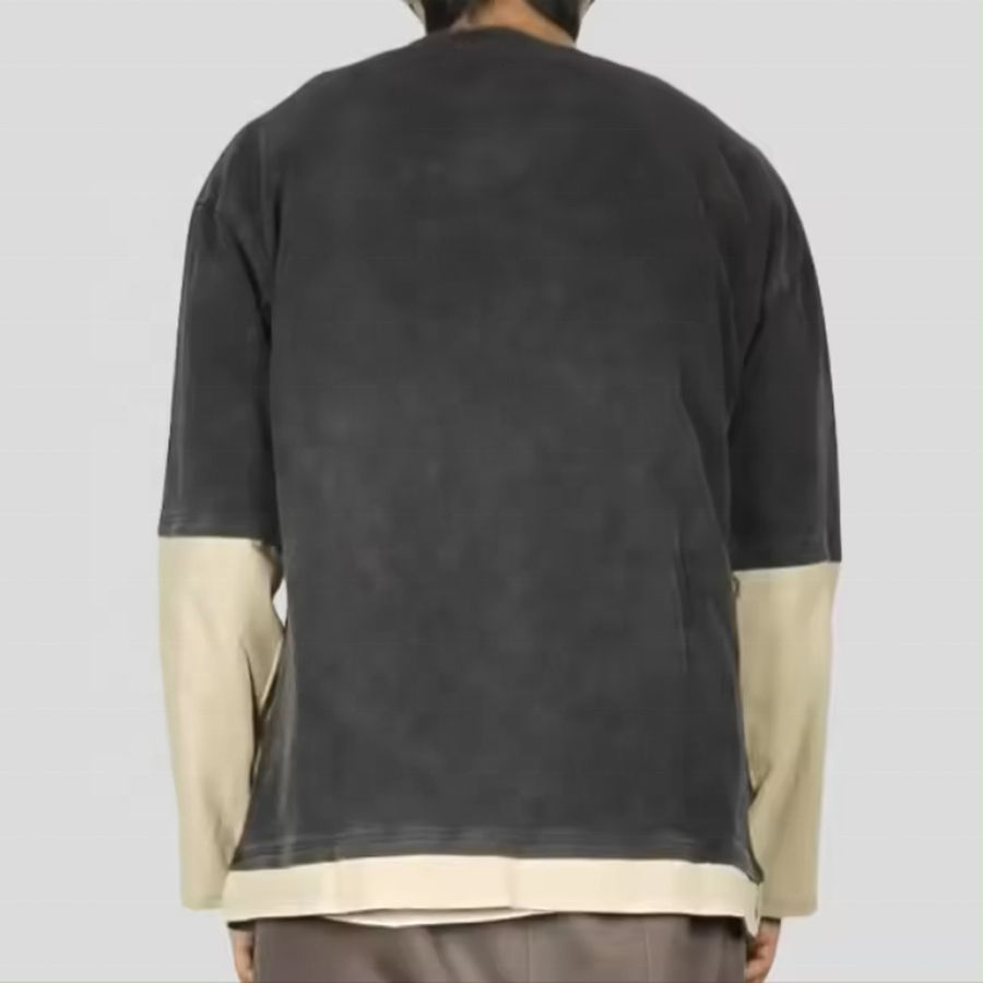 T-shirt Homme Oversize en Coton Double Couche à Manches Longues Effet Délavé Acide de Haute Qualité Personnalisé