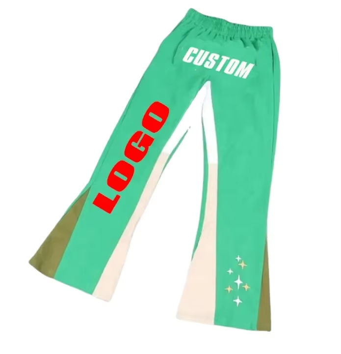 Pantalon de survêtement ample et évasé de haute qualité personnalisé, style rétro hip-hop, fermeture éclair, délavage acide, vintage, évasé, pantalon pour homme OEM