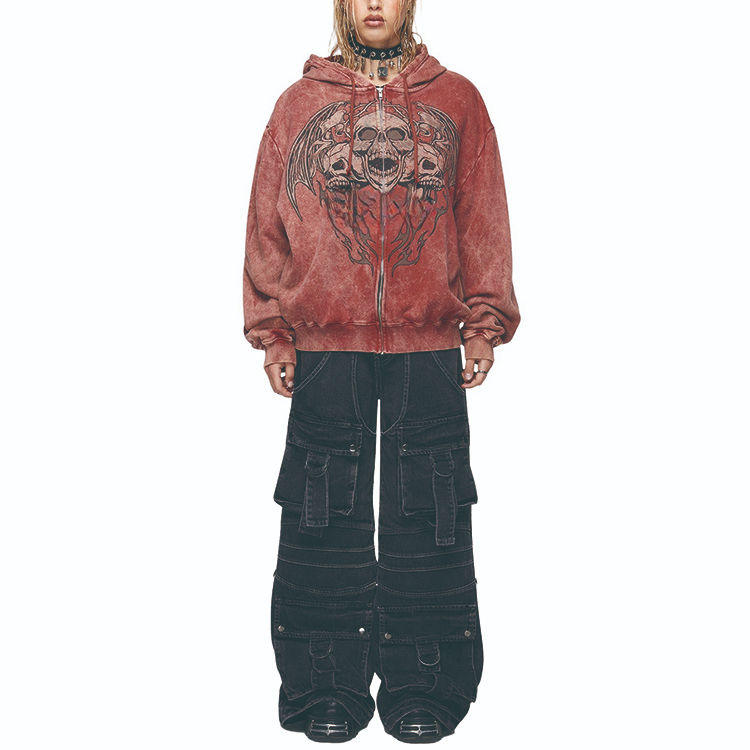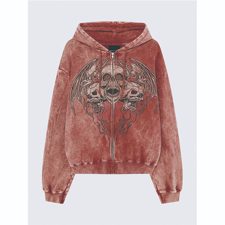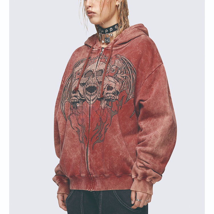 Sweat à capuche pour femme, coupe ample, fermeture éclair, épaules tombantes, cordon de serrage, lavage à l'acide, imprimé vintage, haute qualité, personnalisé