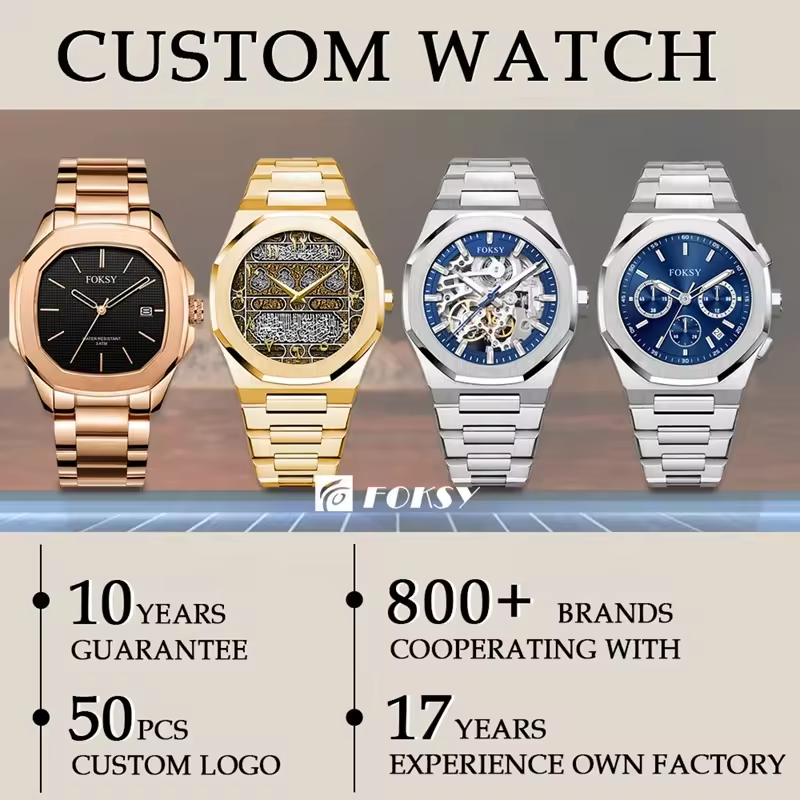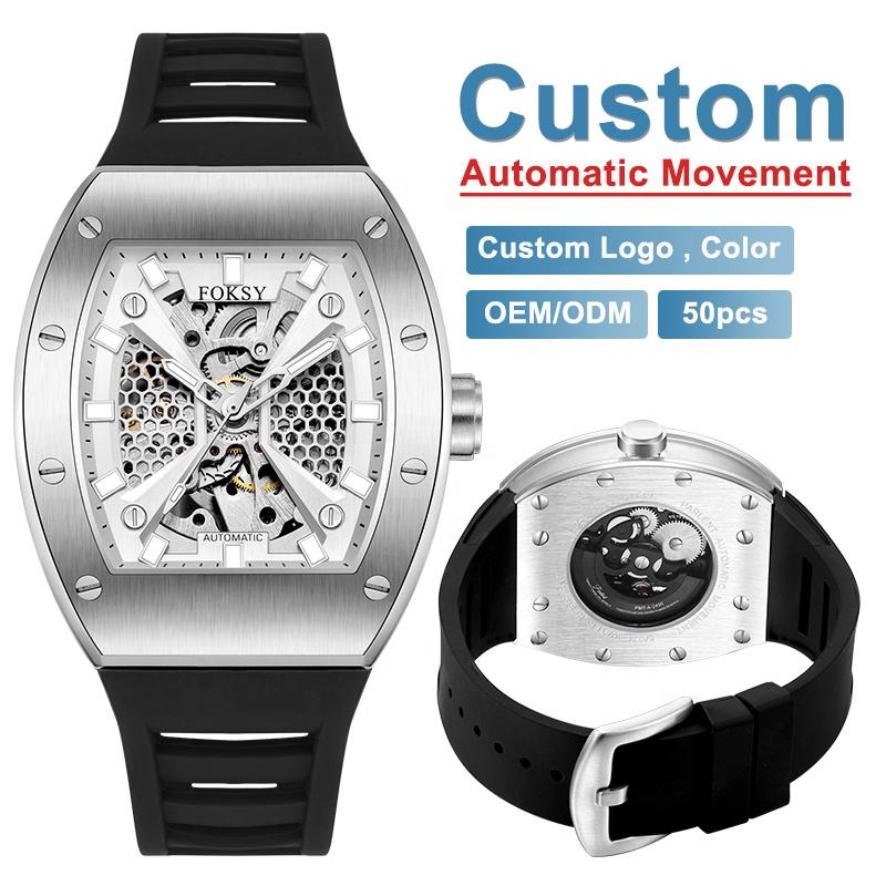 Montres-bracelets en acier inoxydable doré de luxe de haute qualité personnalisées, montres squelette automatiques mécaniques complètes pour hommes