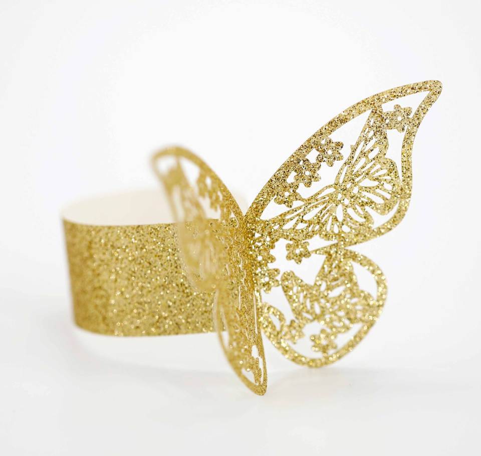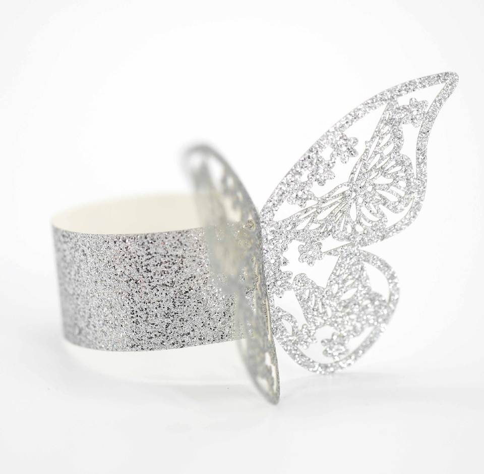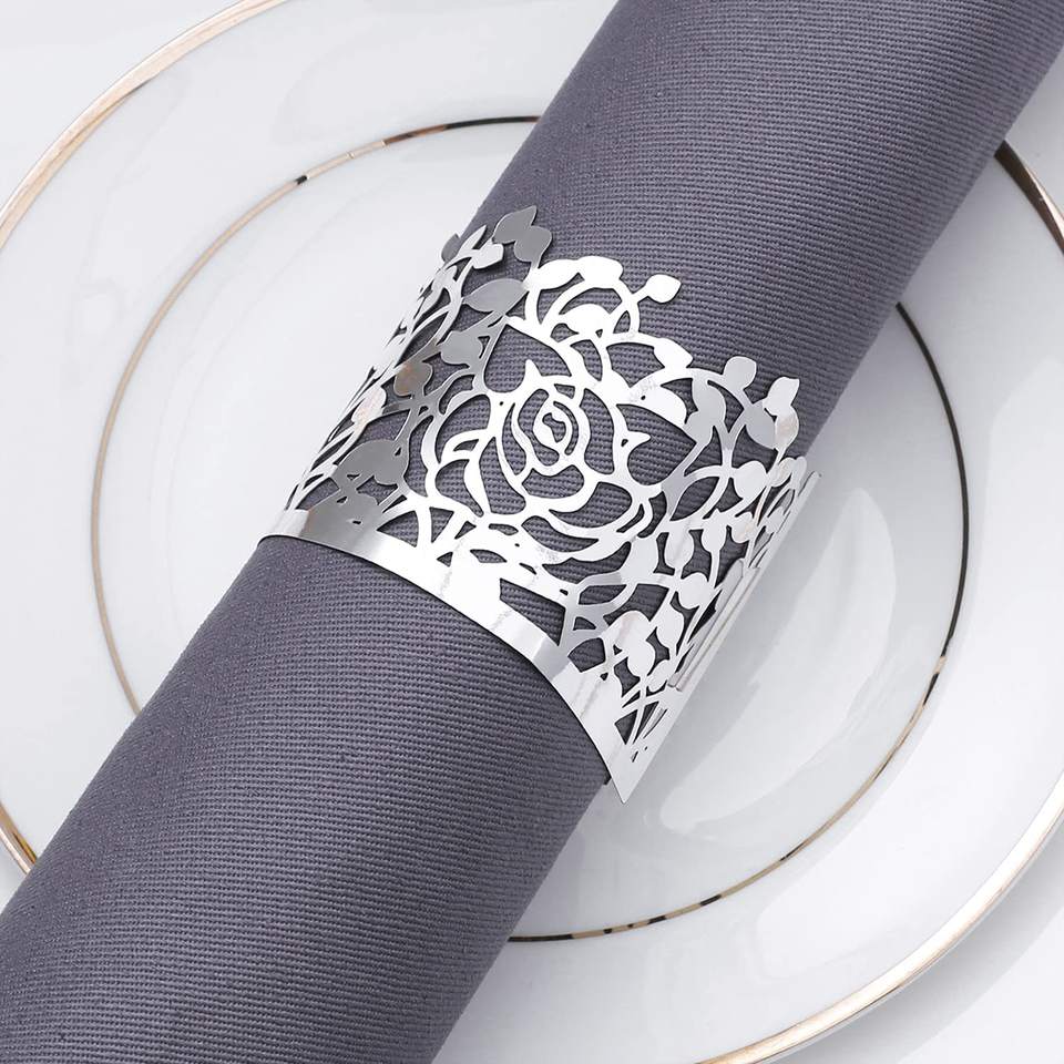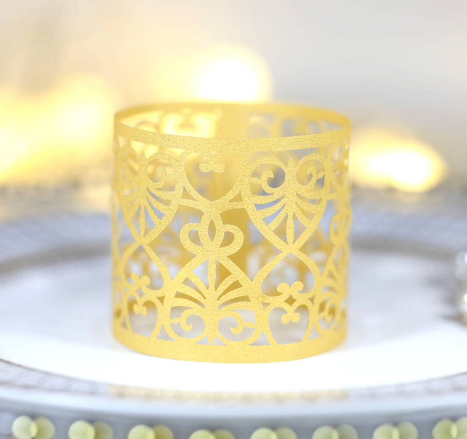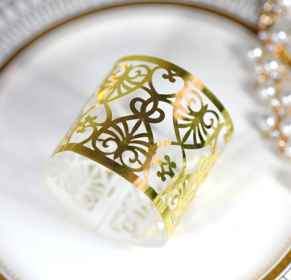 Rond de serviette personnalisé de luxe de haute qualité, décorations de Table découpées au Laser Offre Spéciale, anneaux de serviette en papier argent or