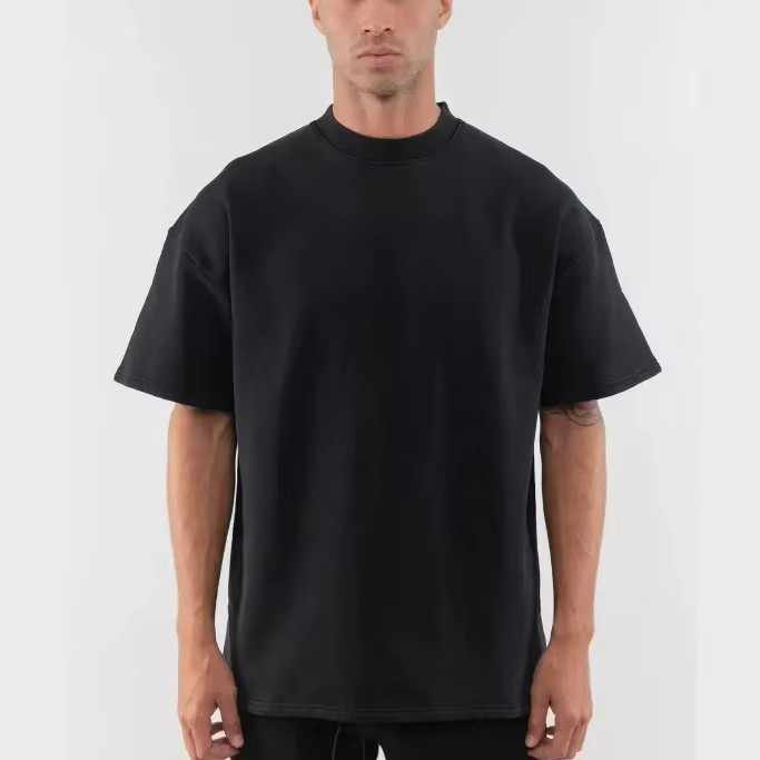 T-shirt surdimensionné de luxe pour homme en coton épais 100 % de haute qualité, col montant, coupe ample et structurée
