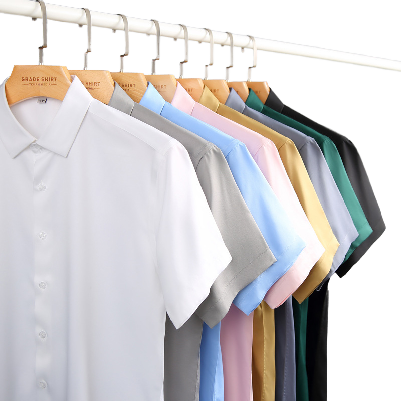 Chemises décontractées pour hommes en tissu de bambou de haute qualité, multicolores, boutons lisses, manches courtes, col montant, respirantes