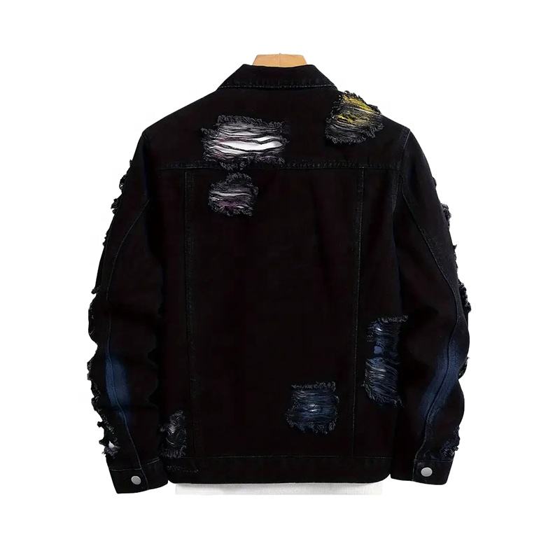 Veste denim personnalisée de haute qualité pour hommes avec col rabattu Poche à rabat déchirée de style de la rue Service OEM pour la saison d'hiver