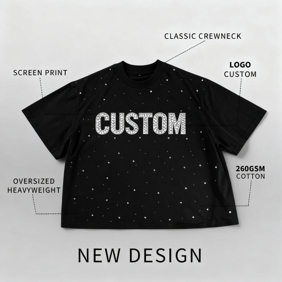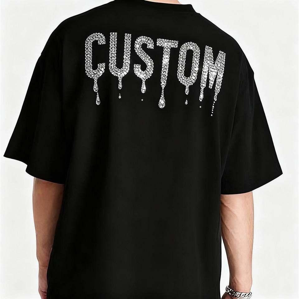 T-shirt en coton 100% pour homme, à manches courtes, tricoté, avec graphisme en strass, diamant, logo imprimé, décontracté, écologique, de haute qualité, personnalisé, 180