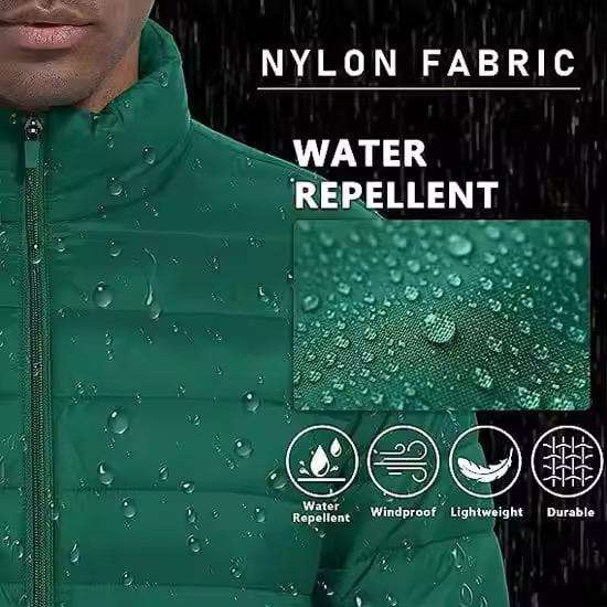 Custom High Quality Men's Winter Outdoor Casual Puffer Jacket with Front Logo Solid Color Breathable & Quick Dry