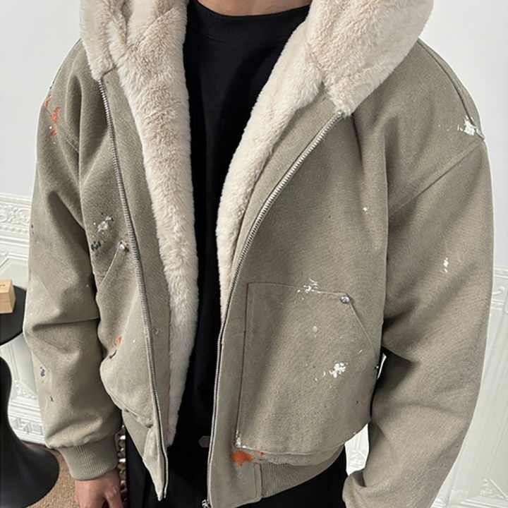 Veste rembourrée universitaire zippée pour hommes personnalisée de haute qualité Style Streetwear éclaboussures de peinture brodée 100% coton saison d'hiver