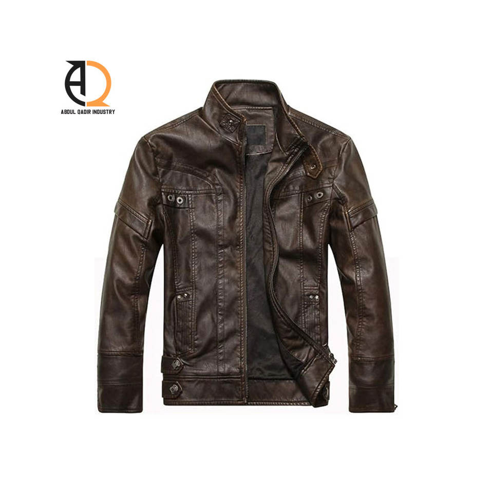 Veste en cuir PU recyclé de luxe pour homme, de haute qualité, avec fermeture éclair et poches, col montant, imperméable, style motard