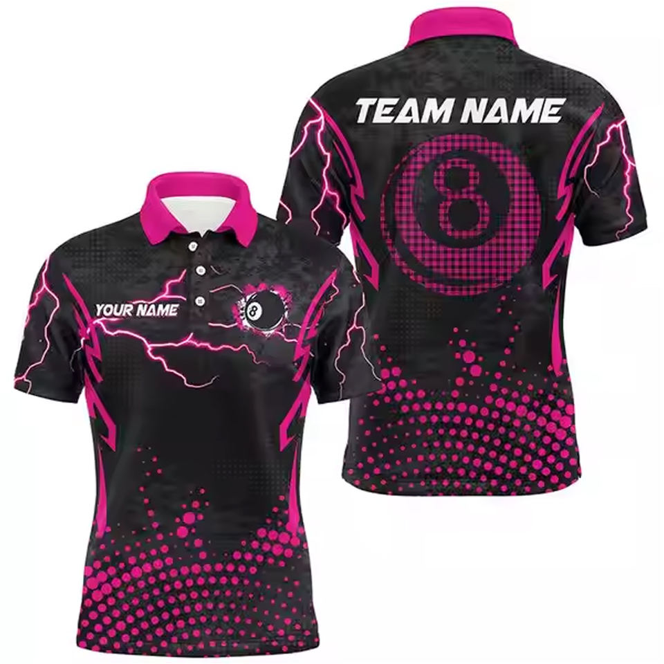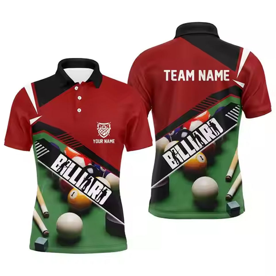 Polo de billard personnalisé de haute qualité pour hommes dernier modèle de polo de billard à manches courtes avec boutons polos à sublimation
