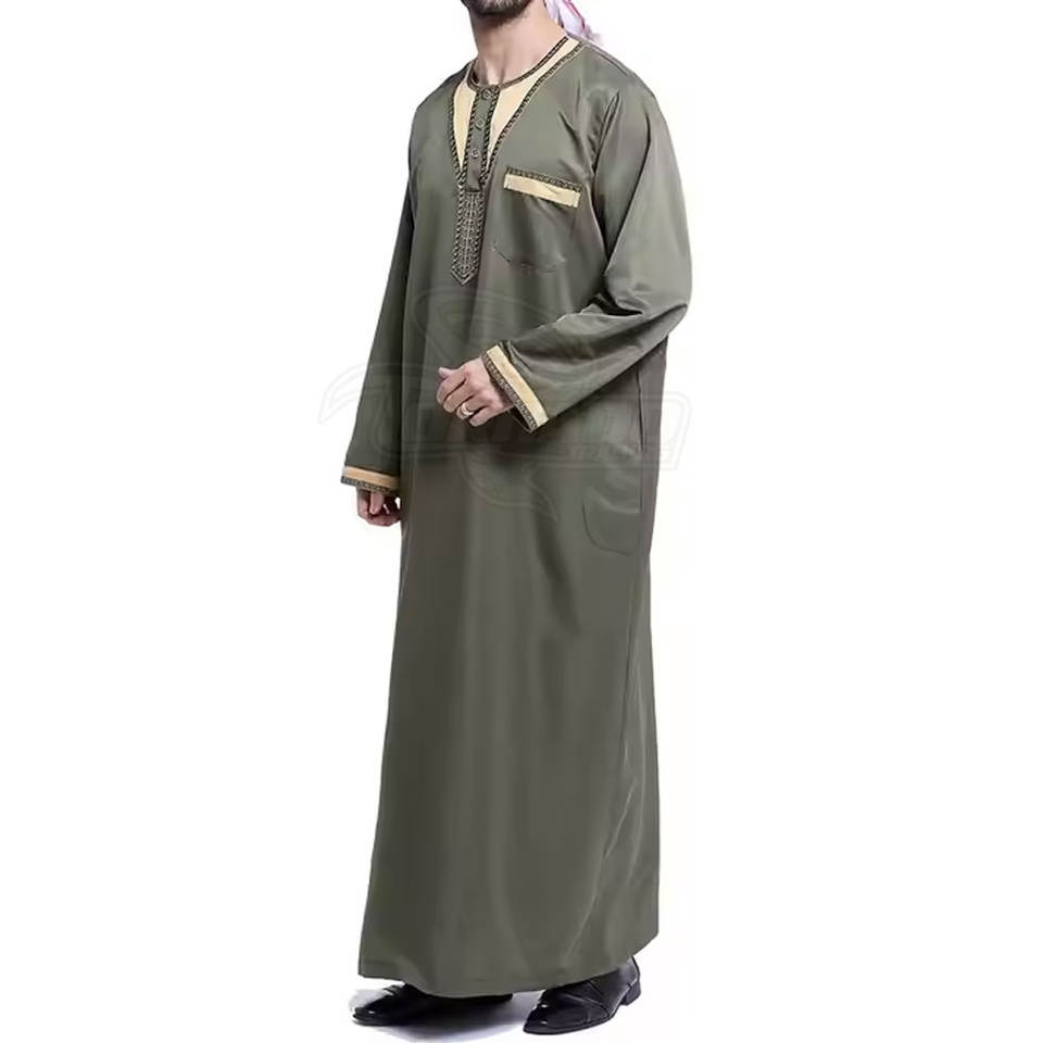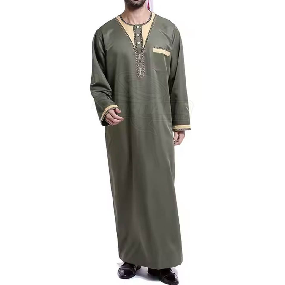 Thobe musulman modeste de haute qualité personnalisé pour hommes, en coton respirant, léger, longueur au sol, broderie printemps, nouveau design