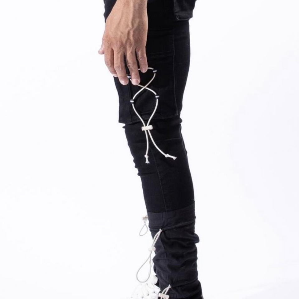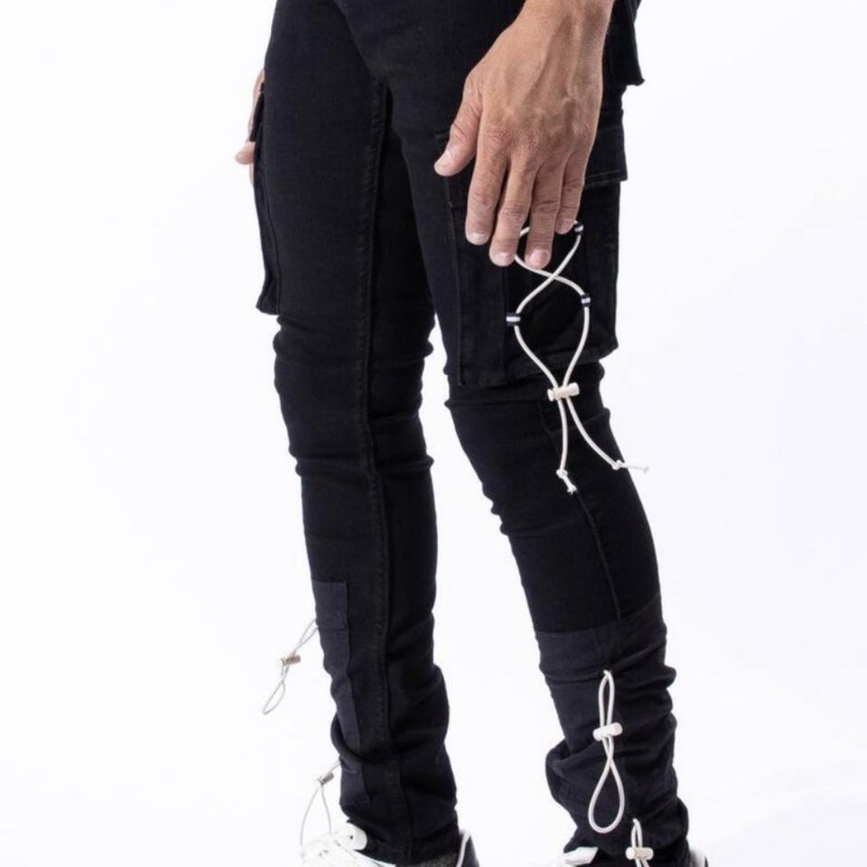 Jeans skinny cargo personnalisés de haute qualité, nouveau design, avec cordon élastique latéral et grandes poches pour hommes