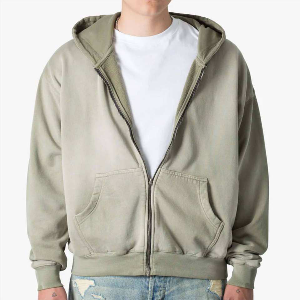 Custom High Quality Oversized Heavyweight Men's Hoodie Zip up Vintage Man Hoodies Sun Faded Distressed Acid Washed Hoodie