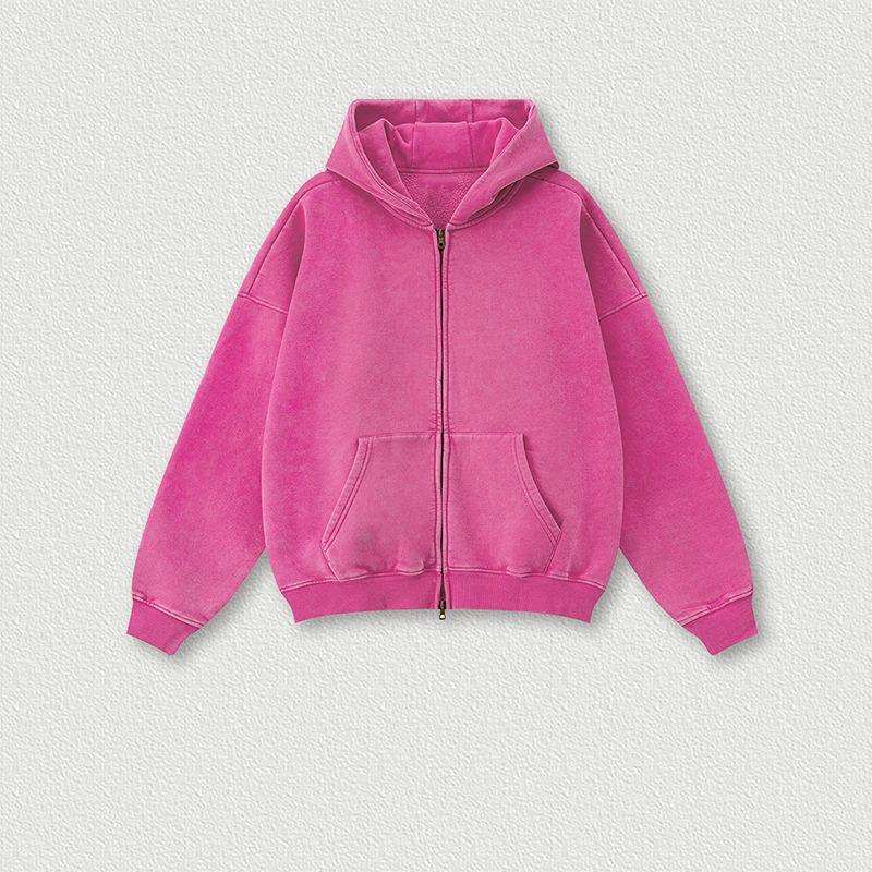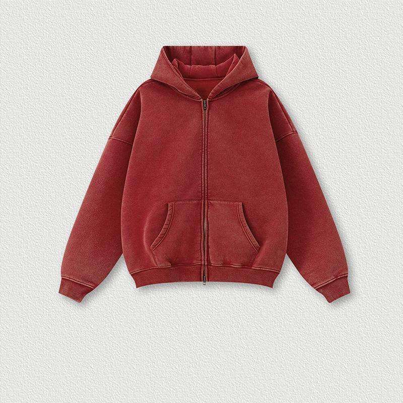 Sweat à capuche zippé pour homme, surdimensionné, de haute qualité, style vintage, effet délavé soleil et usé, délavé à l'acide