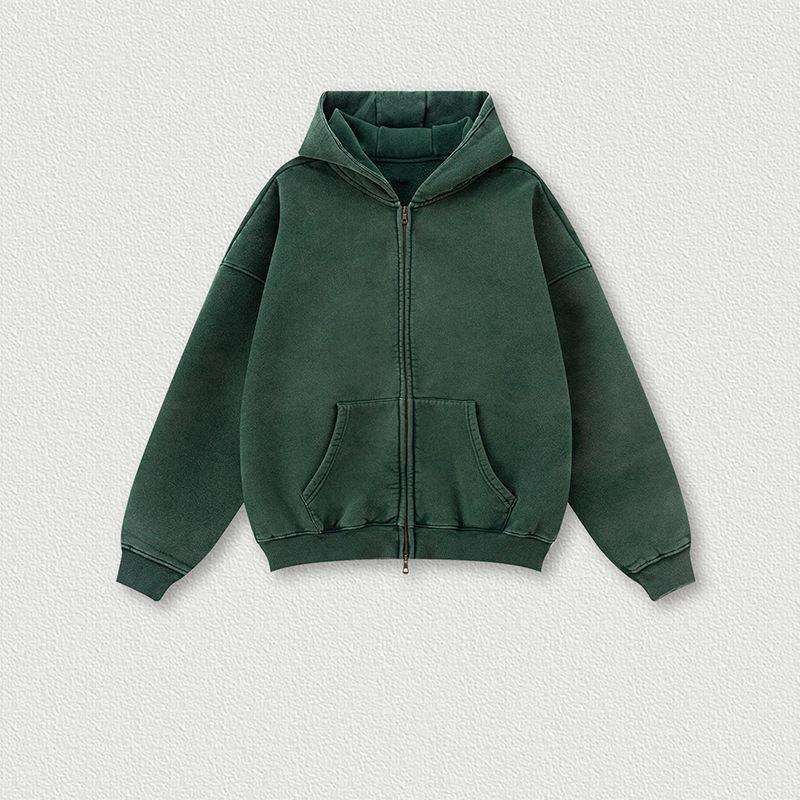 Sweat à capuche zippé pour homme, surdimensionné, de haute qualité, style vintage, effet délavé soleil et usé, délavé à l'acide