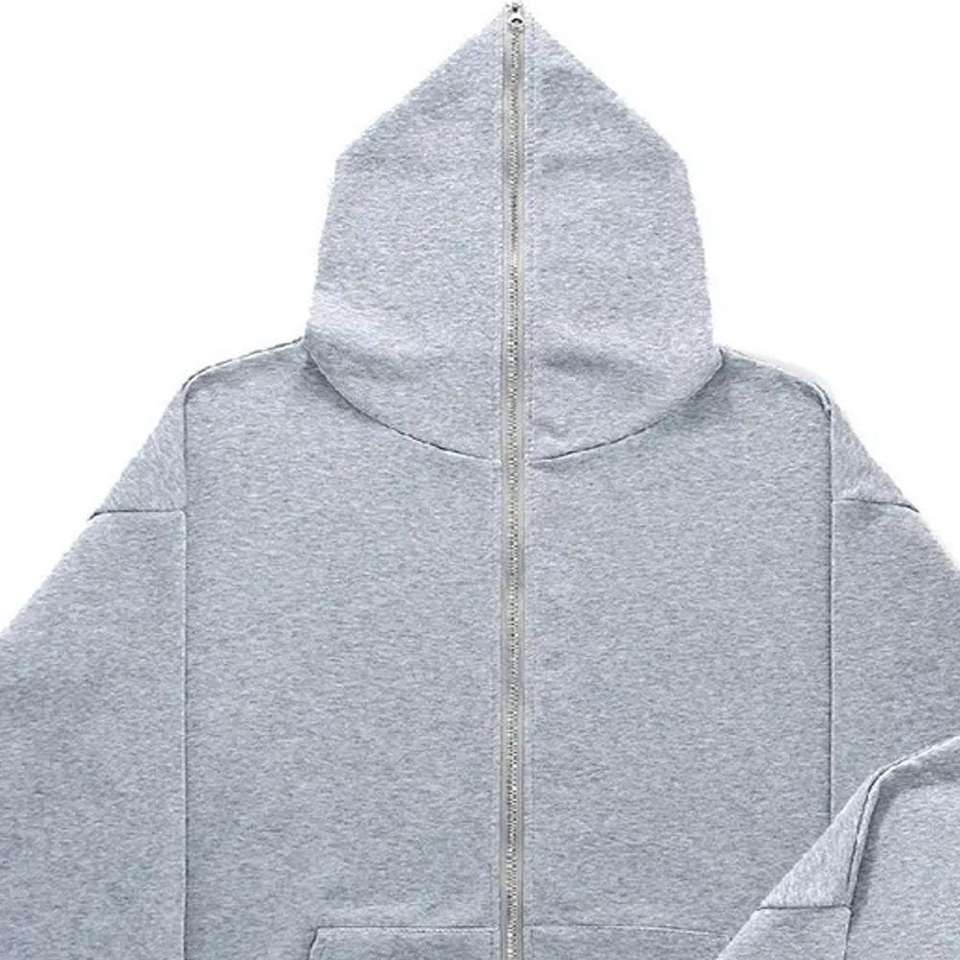 Sweat à capuche zippé pour homme, surdimensionné, de haute qualité, style vintage, effet délavé soleil et usé, délavé à l'acide