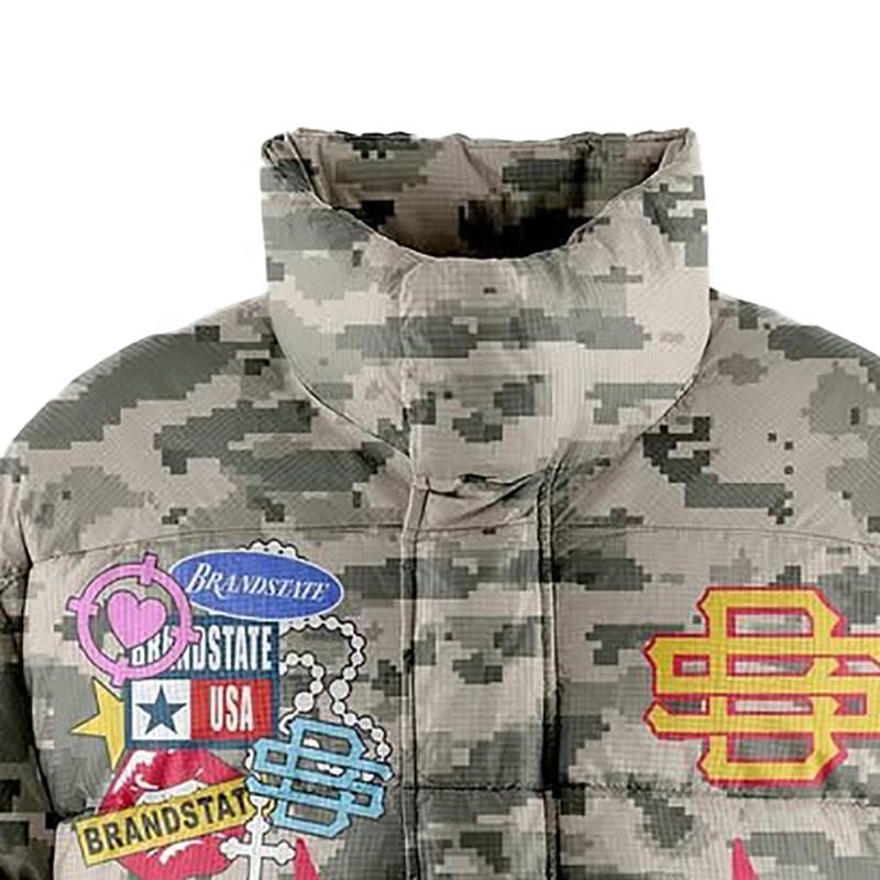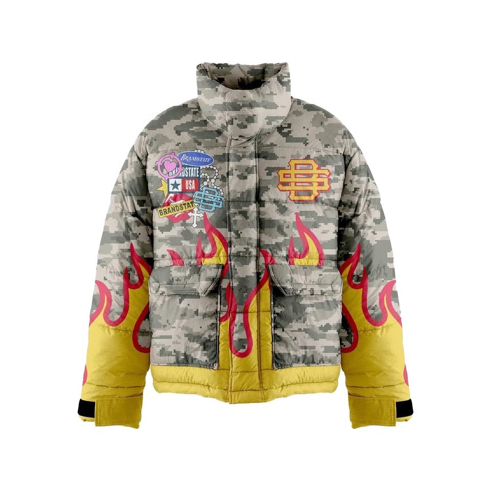 Veste matelassée personnalisée en soie de haute qualité avec col montant, impression sur tout l'hiver, veste rembourrée avec fermeture à glissière, service OEM