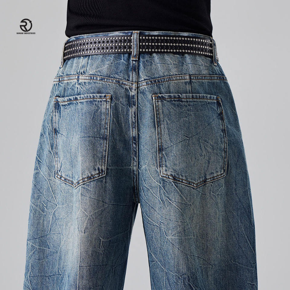 Jeans pour hommes en tissu doux personnalisés de haute qualité pantalons larges de couleur simple