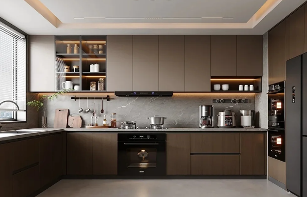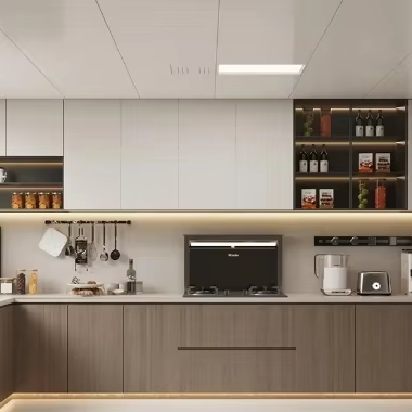Ensemble complet d'armoires de cuisine modernes en bois massif personnalisées de haute qualité pour une conception de cuisine luxueuse