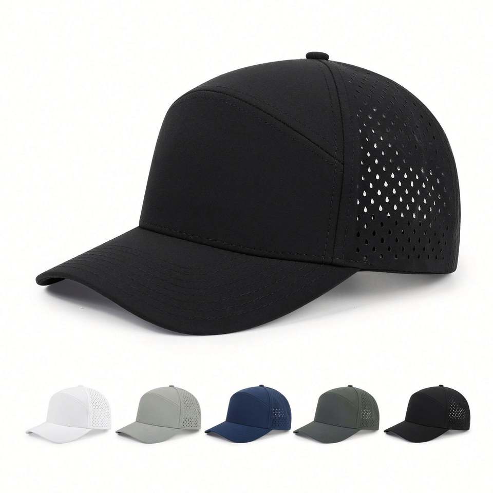 Custom High Quality Sporty Image Logo Snapback Trucker Cap Water Protect Laser Perforated 7 Panel Quick Dry Waterproof Unisex