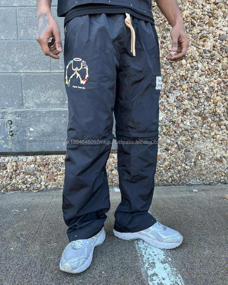 Vêtements de rue de haute qualité personnalisés 2 en 1 pantalon de survêtement ample et ample à imprimé de pierres coupe-vent pantalon court pour hommes pantalon en nylon