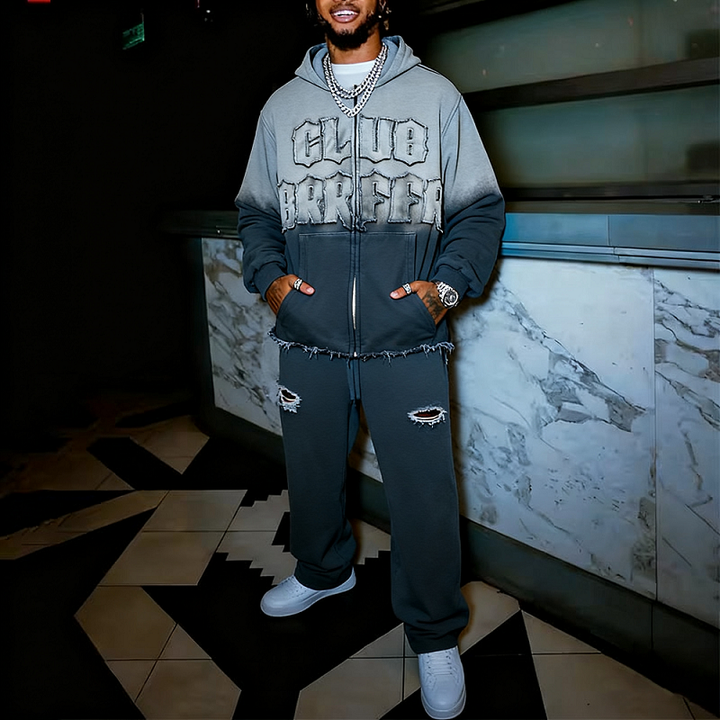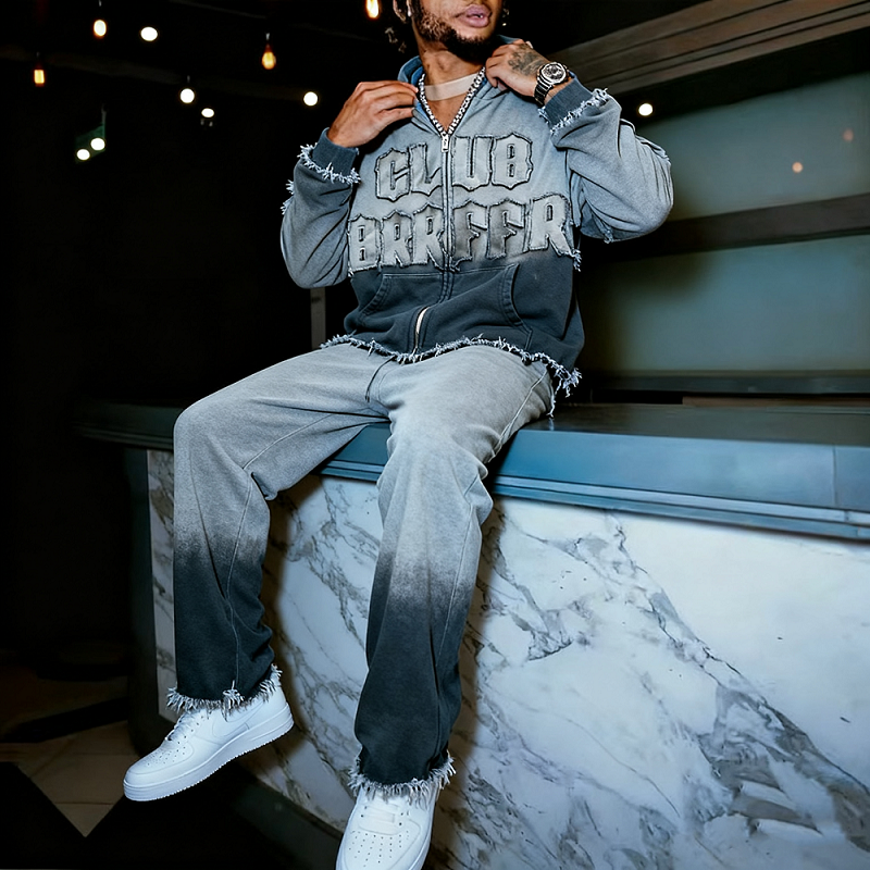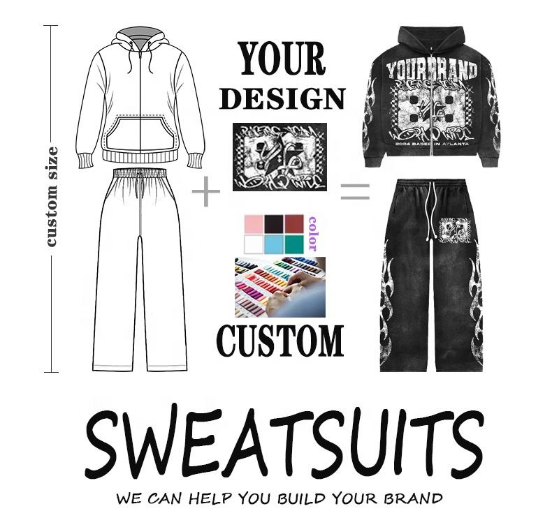 Ensemble survêtement personnalisé de haute qualité, sweat-shirt et pantalon de survêtement avec appliqué brodé et lavé