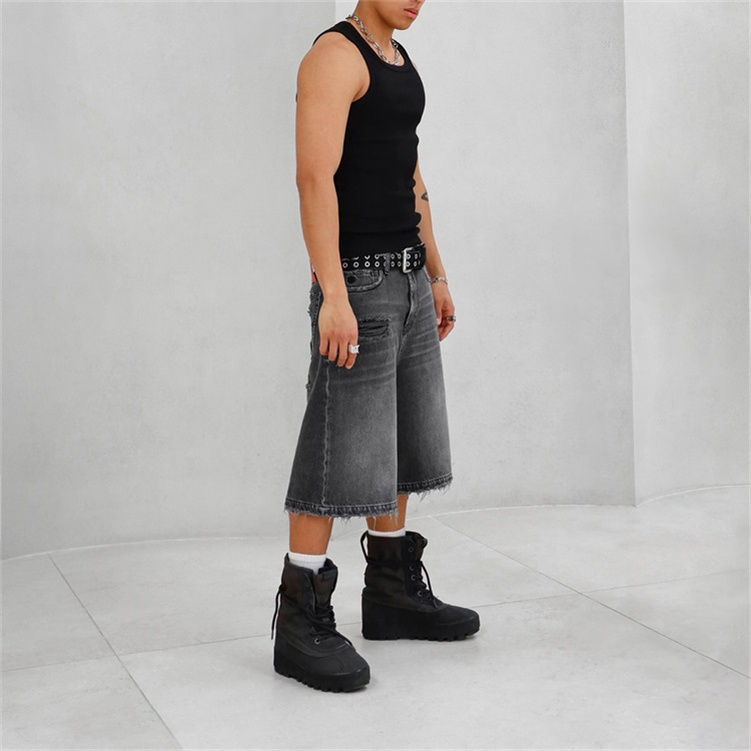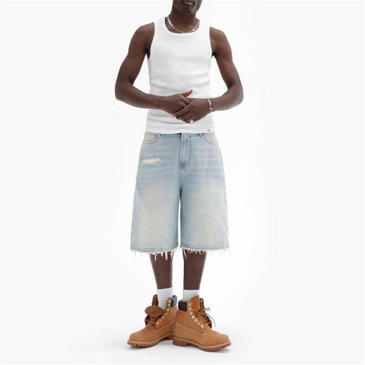 Shorts en jean délavé personnalisés de haute qualité pour homme, style streetwear décontracté, coupe oversize, effet usé, séchage rapide