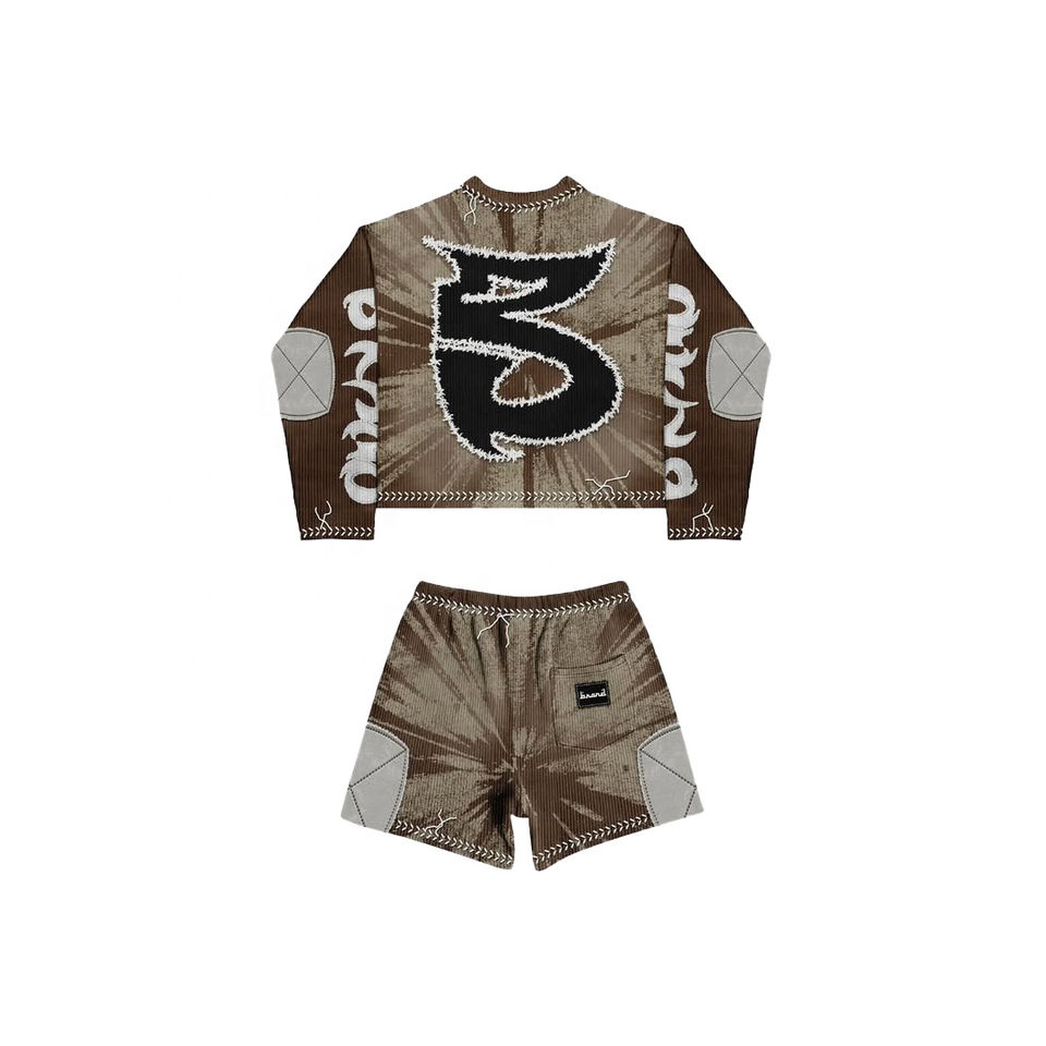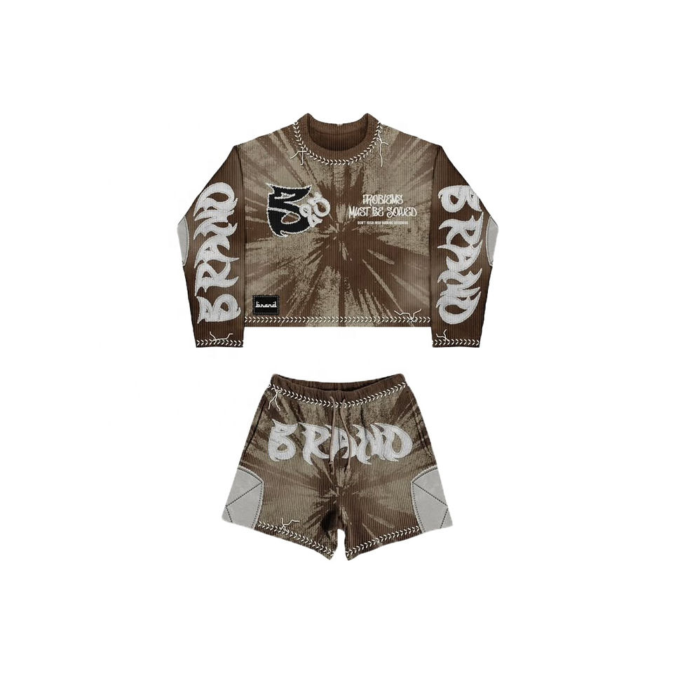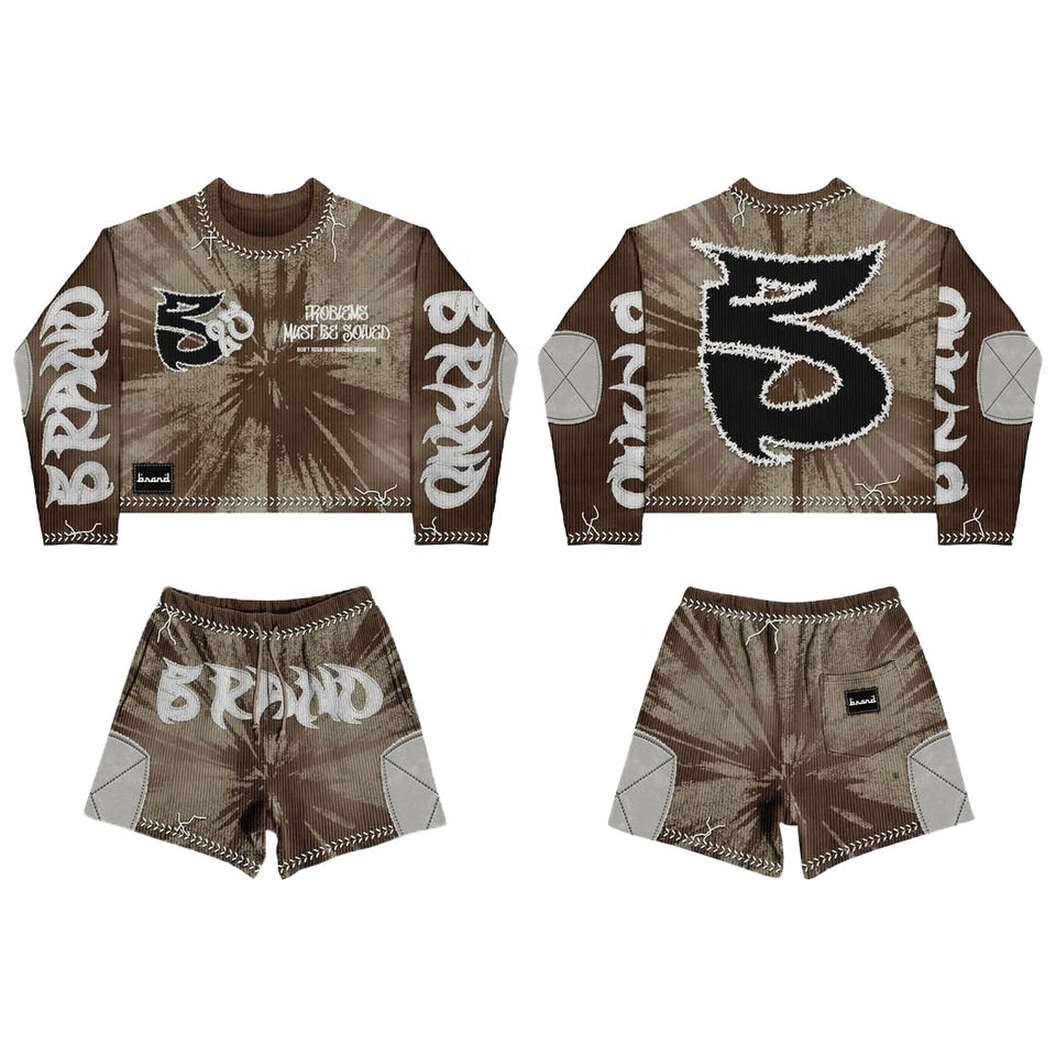 Ensemble d'été unisexe personnalisé de haute qualité – T-shirt décontracté à manches longues en molleton 100 % coton tricoté, coupe oversize
