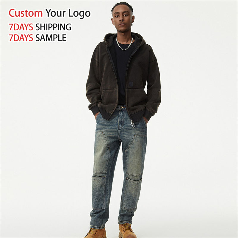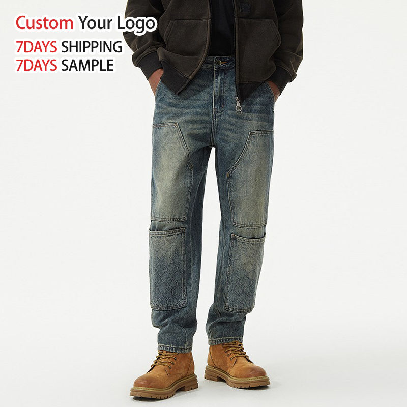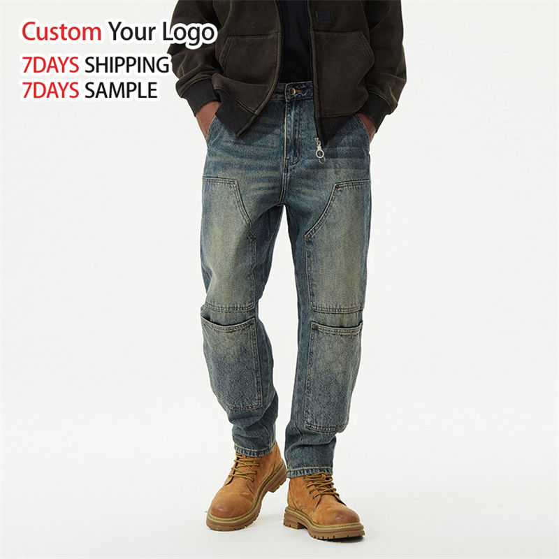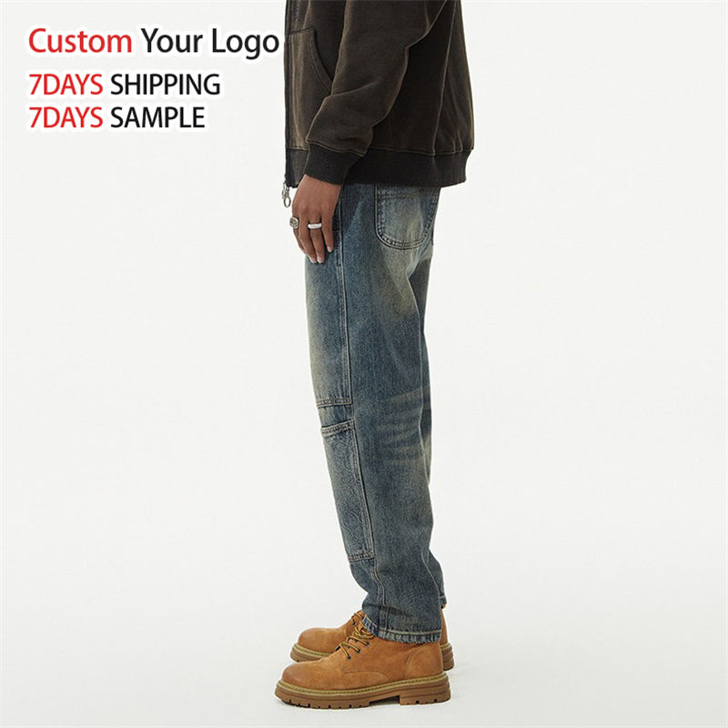 Custom High Quality Light Casual Mid Wide Leg Denim Jeans Pant Wholesale Streetwear Straight Fit Baggy Men Jeans