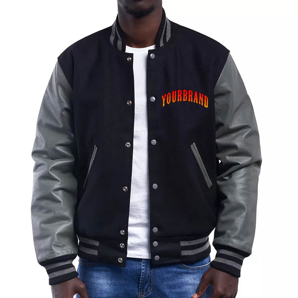 Custom High Quality Winter Autumn Men's Wool Letterman Real Leather Baseball Brand Varsity Jacket Color Embroidery Logos
