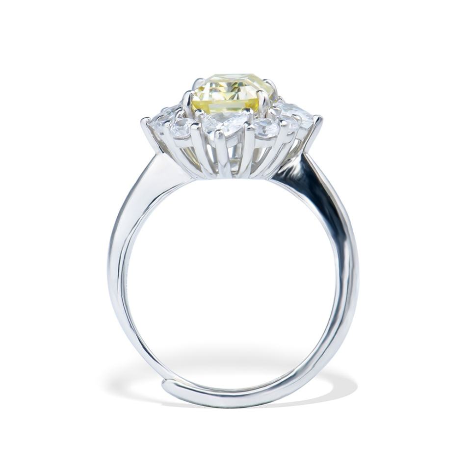 Custom High Quality Women Bulk Fashion Flower S925 Silver Lemon Yellow 6x8mm 2ct Luxury Emerald Cut Diamond Moissanite Ring