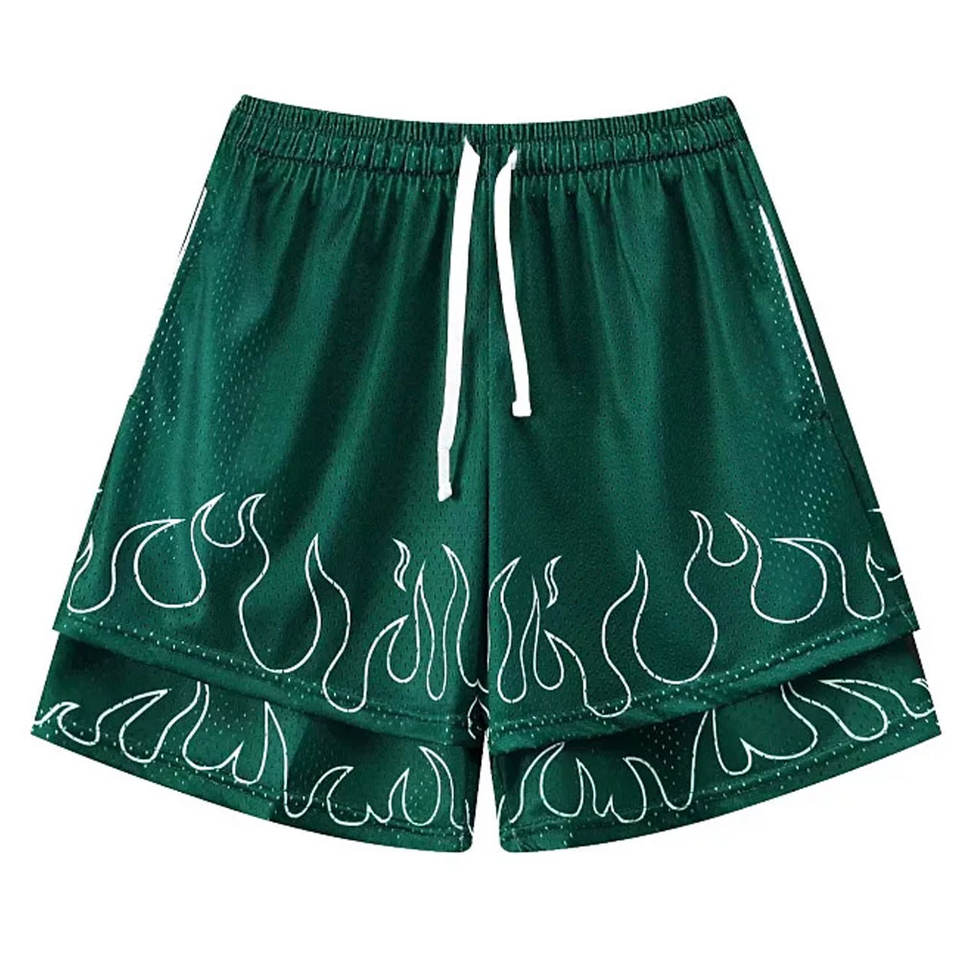 Shorts de basket-ball en maille respirante à séchage rapide de haute qualité imprimés en polyester de qualité supérieure Sublimation personnalisée Double couche Flamme Gym