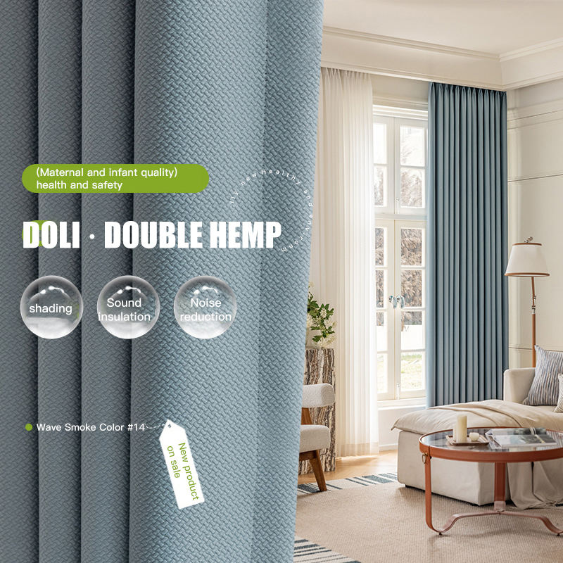 Double Side Cotton Linen Jacquard Blackout Curtain Fabrics Modern High Shading Thermal Insulated Blackout Curtains