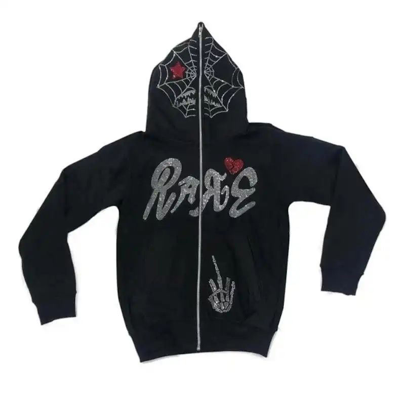 Sweat-shirt à capuche zippé intégral personnalisé marron avec strass squelette pour hommes et femmes, style Hip Hop