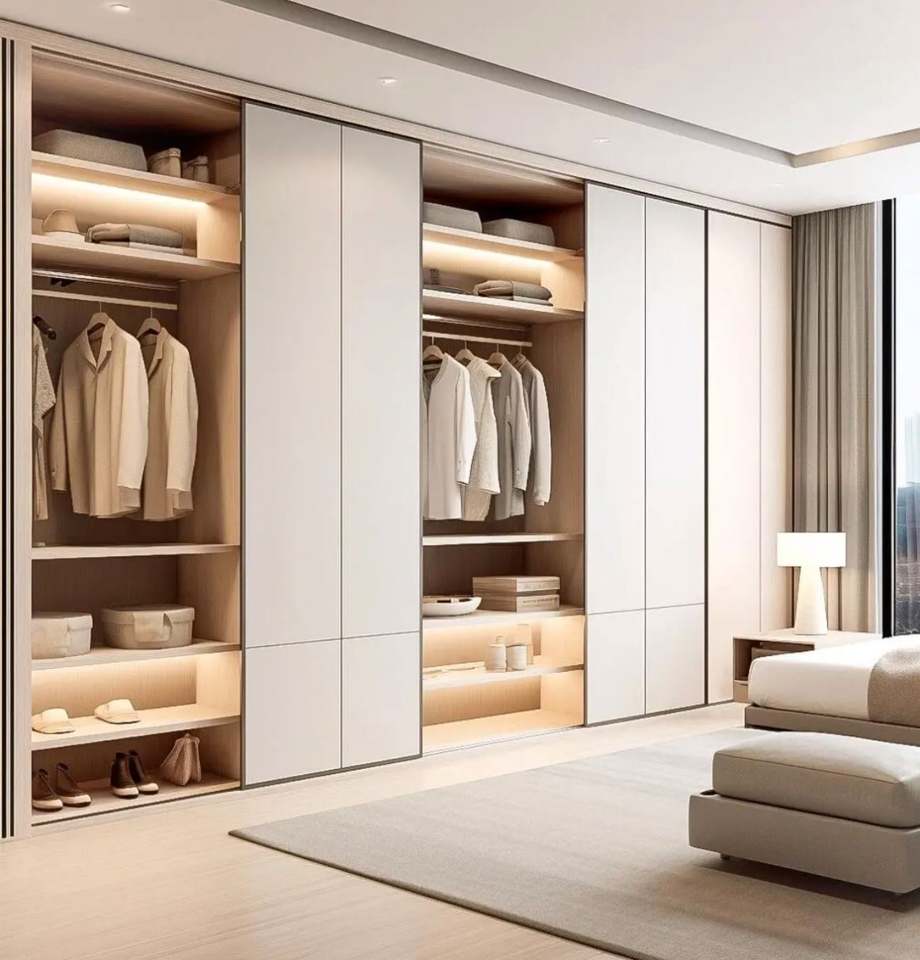 Armoire moderne haut de gamme sur mesure, grande capacité, avec un design spacieux et des fonctionnalités réglables pour les appartements et les hôtels