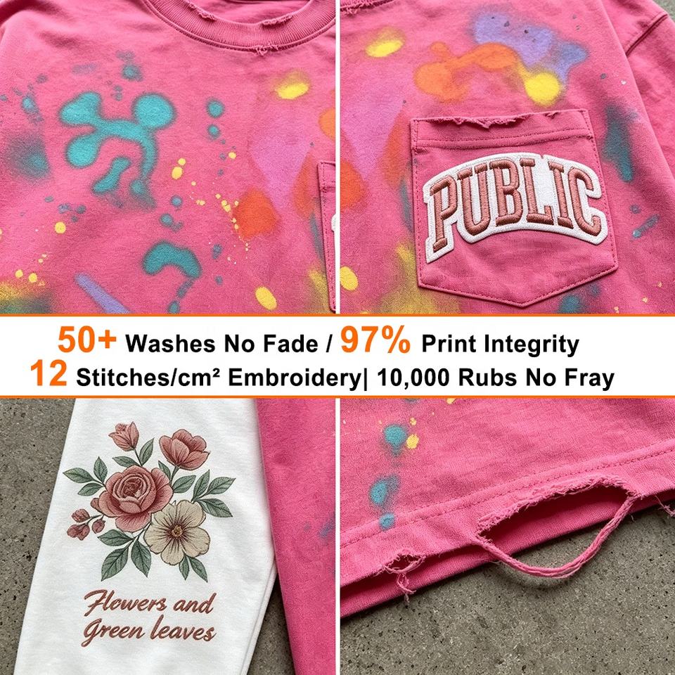 Techniques:Printed/Color blocked/Embroidered/Washed/acid wash/Custom
